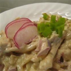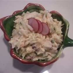 1In a large bowl, whisk together the mayonnaise, lime juice, cumin, salt and pepper. Add the cabbage, carrot, green onions and radishes and stir until well-combined. Chill at least an hour before serving.