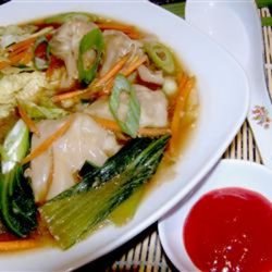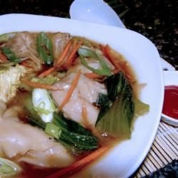 5Place wontons in a soup bowl and ladle soup over wontons to serve. Garnish with chopped green onions.