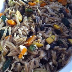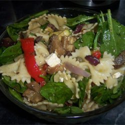 5Drain the softened sun-dried tomatoes and reserve the water. In a large bowl, toss together the roasted vegetables, cooked pasta, sun-drained tomatoes, arugula, and basil. Mix in remaining olive oil, reserved water from tomatoes, balsamic vinegar, garlic, and feta cheese; toss to coat. Season with salt and pepper to taste. Serve immediately, or refrigerate until chilled.