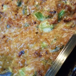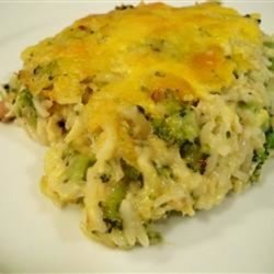 4In a large mixing bowl, combine broccoli, rice, soup and cheese mixture, celery and onion. Season with salt and pepper. Pour mixture into a 9x13 inch baking dish.