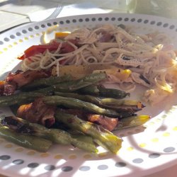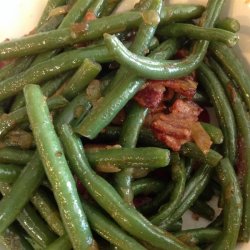 1Place bacon in a large, deep skillet. Cook over medium high heat until the fat begins to render. Stir in onions and garlic; let cook for 1 minute. Stir in beans and water. Let the beans cook until the water has evaporated and the beans are tender. If the beans are not tender once the water has evaporated, add a small amount more water and let them cook until tender. Season with salt and pepper (to taste) and serve.