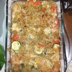 5Cover loosely with foil, and bake in a preheated oven for 25 minutes. Remove foil, and bake until the top is crusty and the vegetables are tender, about 20 minutes.