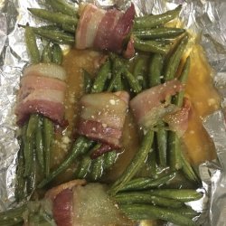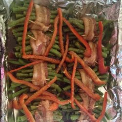 Wrap 7 green beans with bacon and place in prepared dish. Repeat, using all the green beans and bacon.