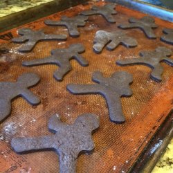 3Divide dough in half. Roll out each half to 1/4 inch thick. Cut with desired shaped cookie cutters. Place on lightly greased cookie sheets and bake for 10-12 minutes.