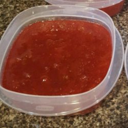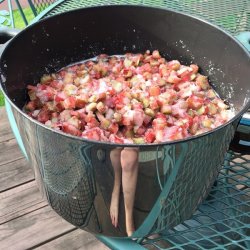 1In a large saucepan or stockpot, stir together the fresh rhubarb and sugar. Cover, and let stand overnight.