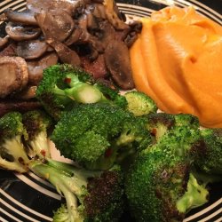 2Heat the olive oil in a large skillet over medium heat, add the crushed red pepper and heat 1 minute. Cook and stir the broccoli in the skillet until it begins to get crispy, 5 to 7 minutes. Season with salt to serve.