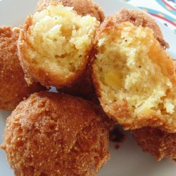 "I don't normally like hush puppies. They are generally too dry, too dense, and too bland for my taste. After tasting some in a restaurant that I actually liked, I decided to come up with a recipe of my own. This one deliberately uses stuff right out of the pantry so that it can be whipped up quickly and served fast."