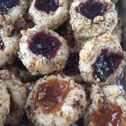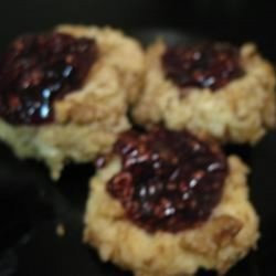 "Delicious and attractive little cookies, with a thumb indentation filled with preserves. Fill with different colored preserves for an interesting presentation."