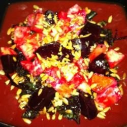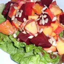 6Arrange 1/2 cup beet greens on 4 salad plates. Top with beet mixture, sprinkle with sunflower seeds and serve.