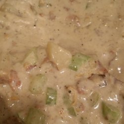 1Place diced bacon in large stock pot over medium-high heat. Cook until almost crisp; add onions, and cook 5 minutes. Stir in water and potatoes, and season with salt and pepper. Bring to a boil, and cook uncovered for 15 minutes, or until potatoes are fork tender.