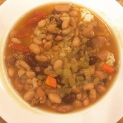 1Place 15-bean soup mix in a large bowl and cover with several inches of cool water; soak in refrigerator 8 hours to overnight. Drain and rinse.