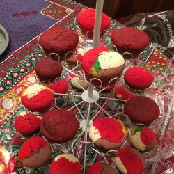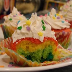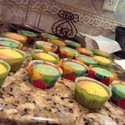 4Using a different spoon for each color batter, spoon a small spoonful of each color into the cupcake liners, until 1/2 to 3/4 full. Do not mix the batter once it is in the cupcake liner. Bake in the preheated oven until a toothpick inserted into the cake comes clean, about 15 to 20 minutes.