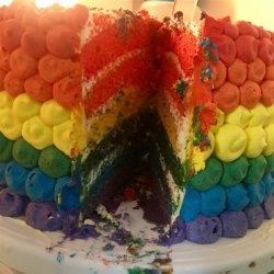 3Divide the cake batter into four separate bowls. Add a few drops of food coloring into one bowl of batter and stir; add more food coloring, if necessary, to reach the desired shade. Repeat with the remaining colors and bowls of batter.
