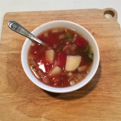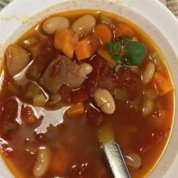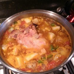1Place the ham bone, onion, tomatoes, kidney beans, potatoes, and green pepper into a 3 quart or larger slow cooker. Dissolve the bouillon cubes in water, and pour into the slow cooker.