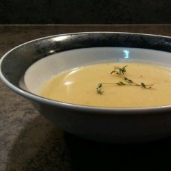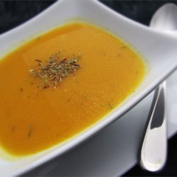 1Melt the butter in a large pot over medium heat; cook the onion, garlic, and thyme in the hot butter until the onion has softened, about 5 minutes. Add the squash and chicken stock; bring to a simmer and cook until the squash is tender, 10 to 15 minutes. Crumble the bouillon into the soup; season with cumin, allspice, salt, and pepper; remove from heat.