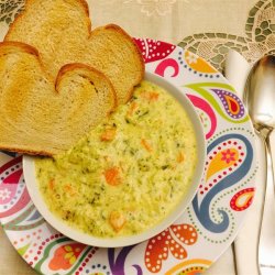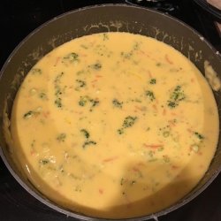 "My husband loves Panera® broccoli cheddar soup but it went up in price and therefore we set out on a hunt to create the perfect broccoli cheddar soup. Here is what we came up with. There are tons of variations and options to make this soup your own. You can add extra veggies, different cheeses, garlic to your onions, a little nutmeg to the finished soup, green onions, sour cream, etc. The list goes on and on. Make it your own! Serve topped with cheese!"