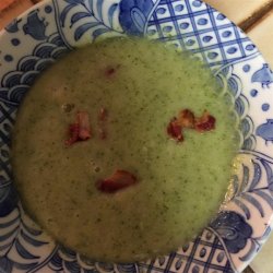 1Heat olive oil in a large saucepan, and saute onion and garlic until tender. Mix in broccoli, potato, and chicken broth. Bring to a boil, reduce heat, and simmer 15 minutes, until vegetables are tender.