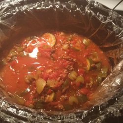 2Combine sausage mixture, zucchini, tomatoes, bell peppers, onion, salt, sugar, oregano, Italian seasoning, basil, and garlic powder in a slow cooker.