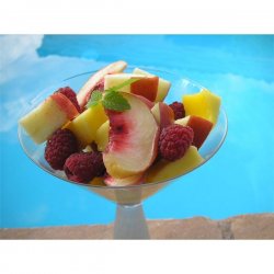 "This is a sweet fruit salad intended to be served as a low-fat dessert. The syrup is essential; without it, you just have an ordinary fruit salad, for which you probably don't need a recipe! You can vary the fruits to use what you have on hand. This is especially good with strawberries and melon. Bananas might be too overpowering, though."