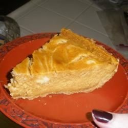 5Cover edge of crust with 2 to 3 inch strip of aluminum foil to prevent excessive browning. Bake in preheated 35 to 40 minutes or until knife inserted in center comes out clean. Remove foil the last 15 minutes of baking. Cool 30 minutes, then refrigerate at least 4 hours before serving.