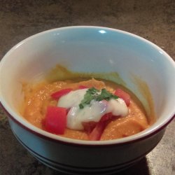 3Puree the soup using an immersion blender or regular blender. If using a counter top blender, puree in small batches, filling the blender just a bit past half way to avoid spillage. Whisk peanut butter into the soup, and heat through. Stir in lime juice, and salt.
