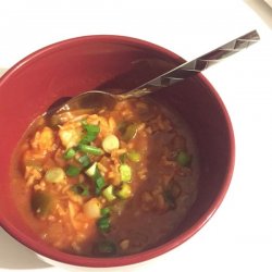 1Melt butter in a large pot over medium heat. Saute green bell pepper, onions, and garlic until tender. Stir in vegetable juice, clam juice, and water. Season with thyme, basil, red pepper, bay leaf, and salt. Bring to a boil, and stir in rice. Reduce heat, and cover. Simmer 15 minutes, until rice is tender.