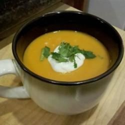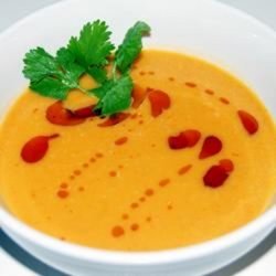 3Remove the skins from the sweet potatoes and cut into bite size chunks. Add to the soup and cook for 5 more minutes so they can soak up the flavor. Stir in lemon juice and season with salt. Ladle into bowls and garnish with a drizzle of sesame oil and a little bit of cilantro.