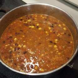1Heat oil in a large saucepan over medium-high heat. Saute the onion, red bell peppers, jalapeno, mushrooms, tomatoes and corn for 10 minutes or until the onions are translucent. Season with black pepper, cumin, and chili powder. Stir in the black beans, chicken or vegetable broth, and salt. Bring to a boil.