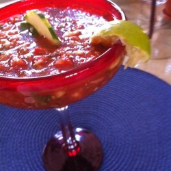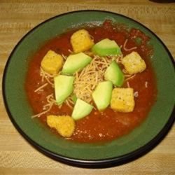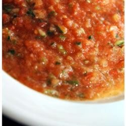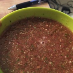 1In a blender or food processor, combine tomato juice, onion, bell pepper, cucumber, tomatoes, green onions, garlic, lemon juice, red wine vinegar, tarragon, basil, parsley, sugar, salt, and pepper. Blend until well-combined but still slightly chunky. Chill at least 2 hours before serving.