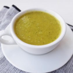 1Heat the oil in a large pot. Stir in the onion, and season with curry powder and salt. Cook and stir until onion is tender. Stir in zucchini, and cook until tender. Pour in the chicken stock. Bring to a boil. Cover, reduce heat to low, and simmer 20 minutes.