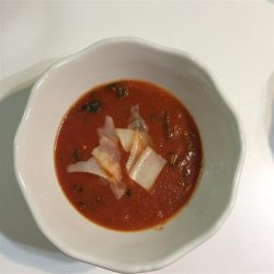 1Melt butter in a large saucepan over medium heat. Saute onion and garlic for 3 minutes. Stir in milk and cook for 2 minutes, stirring occasionally. Stir in tomato puree and sugar. Mix well, cover and bring to a boil over high heat. Reduce heat to low and simmer, covered, for 5 minutes. Add spinach, basil, salt and pepper and simmer, uncovered, for 2 minutes, stirring occasionally. Sprinkle with parmesan cheese, if desired.