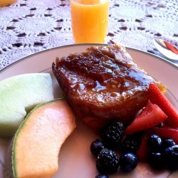 2Remove crusts from bread, and arrange in the baking dish in a single layer. In a small bowl, whisk together eggs, half and half, vanilla extract, orange brandy, and salt. Pour over the bread. Cover, and chill at least 8 hours, or overnight.