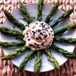 "Here is a quickie dip that will make your family love steamed artichokes and asparagus!"
