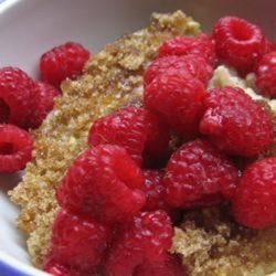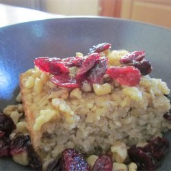 1Beat together oil and sugar. Mix in eggs, milk, salt, baking powder, oatmeal. Beat well then stir in raisins. Pour into a lightly grease pie pan. Sprinkle with brown sugar and cinnamon. Refrigerate overnight.