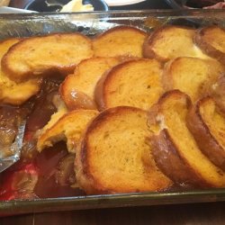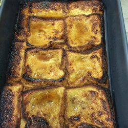 2Spread the sugar mixture into the bottom of the prepared pan. Spread the apple pie filling evenly over the sugar mixture. Layer the bread slices on top of the filling, pressing down as you go. In a medium bowl, beat the eggs with the milk and vanilla. Slowly pour this mixture over the bread, making sure that it is completely absorbed. Cover the pan with aluminum foil and refrigerate overnight.