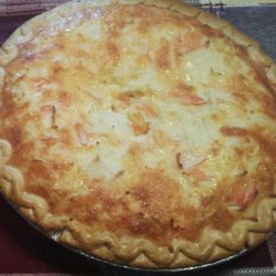 In a medium bowl, mix together eggs, milk, mayonnaise and cornstarch. Mix in the imitation crab and Swiss cheese. Pour into pie shell.