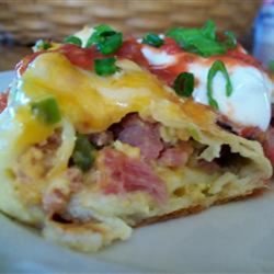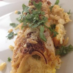 2In a medium bowl, mix together eggs, cream, and milk, flour, garlic powder, and hot pepper sauce. Pour egg mixture over tortillas. Cover, and refrigerate overnight.