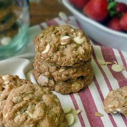 2In a large bowl, cream together the strawberry spread, margarine, white sugar and brown sugar until smooth. Beat in the egg and vanilla, then stir in the olive oil. Combine the flour, baking soda and cinnamon; stir into the creamed mixture. Mix in the oats until well blended. Drop dough by heaping spoonfuls 2 inches apart onto the prepared cookie sheets.