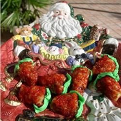 1In a large skillet over medium heat, combine the butter, sugar, eggs and dates. Cook for 5 minutes, or until butter is melted and sugar is completely dissolved. Gradually stir in the flour and salt, and continue cooking for 5 to 7 minutes. Remove from heat and stir in the vanilla, almonds and crispy rice cereal until well blended. Roll pieces of dough into strawberry shapes. Roll the berries in red sugar and pipe a green leaf on top using a leaf tip attachment with frosting tube or pastry bag.