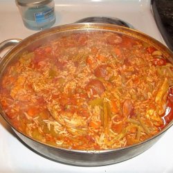2Stir in stewed tomatoes and tomato paste, and season with salt, black pepper, cayenne pepper, red pepper flakes, Worcestershire sauce and rosemary. Cover, and bring to a boil. Reduce heat, stir in water, and add chicken pieces. Simmer for 30 minutes.