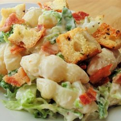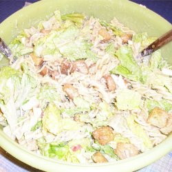 "This salad takes everything from a Caesar salad.. but take away some of the lettuce and add macaroni, and you have a whole new dish! You can add any noodle you desire! It is very delicious and easy to make."