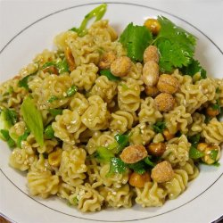 2Mix spaghetti, sesame oil, honey, soy sauce, corn oil, red pepper flakes, and salt together in a large bowl until spaghetti is evenly coated. Cover bowl with plastic wrap and refrigerate for at least 4 hours. Add cilantro, green onions, peanuts, and sesame seeds; toss to combine.