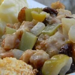 3In a skillet melt the butter and saute the onions, garlic, and celery for about 4 to 5 minutes. Stir the sauteed onions into the bread cube mixture. Add the diced apples, parsley, salt and paprika and stir carefully. Place stuffing mix in the prepared dish or you can alternately place it in a large roaster with your favorite uncooked meat (pork chops, turkey, chicken, etc.).