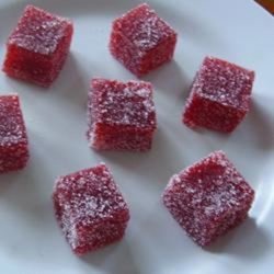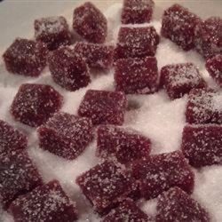 3Pour candy into prepared pan and let set at room temperature overnight. Cut candy into squares and roll squares in sugar. Place sugared candies onto waxed paper to set.