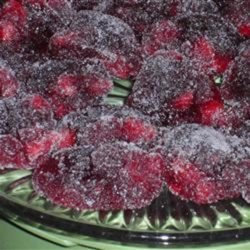 2Combine 1 cup sugar, jellied cranberry sauce, and raspberry Jell-O(R) mix in a saucepan over medium heat, stirring until sugar and gelatin have dissolved. Bring to a boil, reduce heat to low, and simmer 20 minutes, stirring often. Mix walnuts into candy.