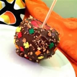 "Granny Smith apples are dipped in chocolate and rolled in candy or nuts. Use your favorite chocolate for this recipe, dark milk or white. This is good to make with children close to Halloween or anytime."