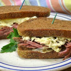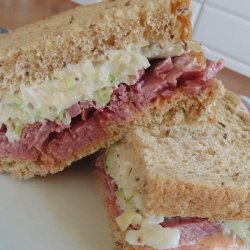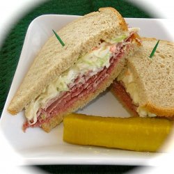 "I think of this sandwich as a cousin to the reuben. It's a cold sandwich of corned beef, topped with Russian dressing and coleslaw, on Jewish rye. Yum!"