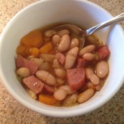 "Instead of starting with a hambone (which you won't have unless you've just eaten a baked ham) and dried beans (which require significant soaking and simmering time), simply open cans of chicken broth and beans. Minced prosciutto instantly transforms commercial chicken broth into a ham-flavored soup base. Italian sausage reinforces the pork flavor and makes the soup substantial and satisfying. Mashing some of the canned beans thickens the soup and gives it the body of one that's been long simmered. Sauteed onions, carrots and celery add depth of flavor and ensure the soup's homemade feel."