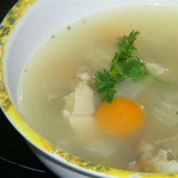 "Reinvent turkey leftovers with this simple method for making turkey soup. Simmer turkey bones with onion, carrots, celery, and herbs for a tasty broth. Just add chopped leftover turkey meat and the soup is ready!"