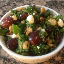 1Toss kale, grapes, feta cheese, and walnuts together in a large salad bowl.